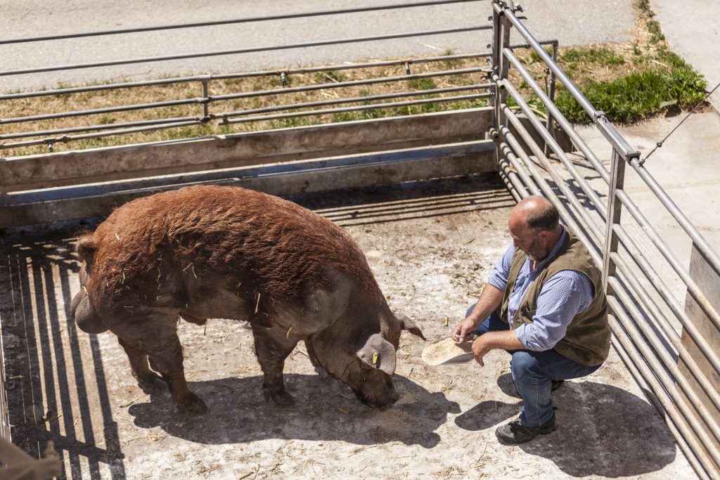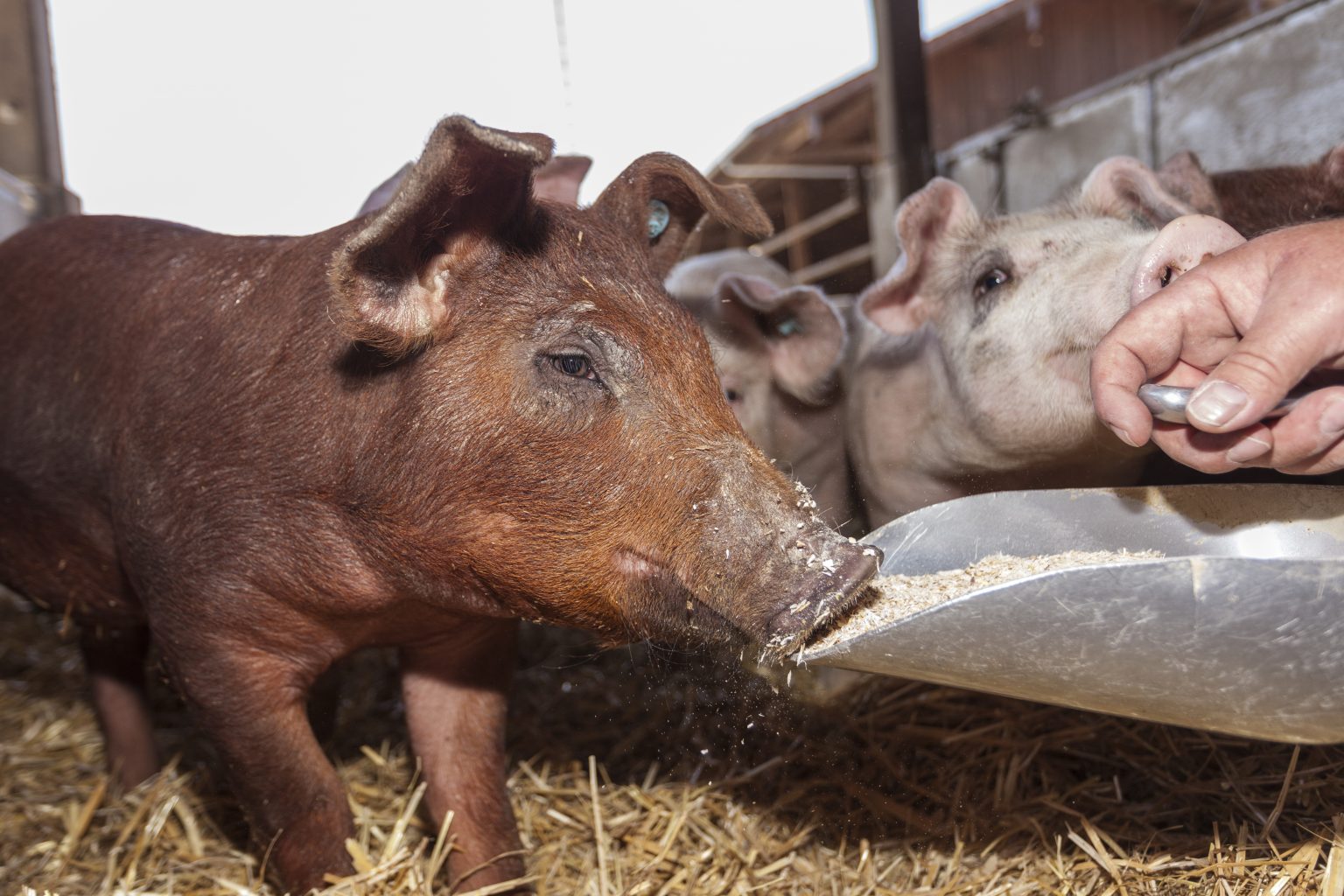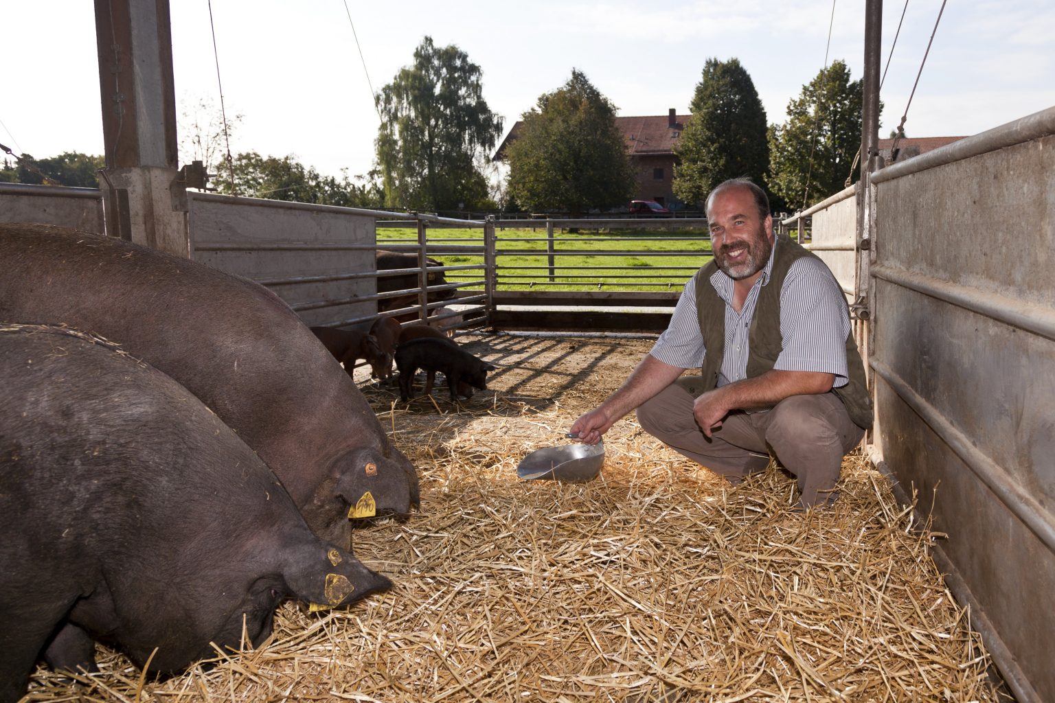 Am Ederhof halten wir ungefähr 10 reinrassige Duroc-Zuchtsauen, 6 Duroc-Eber, 2 Schweizer Edelschwein-Eber und circa 360 Mastschweine aus eigener Zucht neben einem Bestand von 60 Zuchtsauen der Kreuzung Landrasse x Edelschwein. Wir sind derzeit einer der wenigen ökologisch arbeitenden Zucht- und Mastbetriebe mit einem größeren reinrassigen Duroc-Bestand in Deutschland.